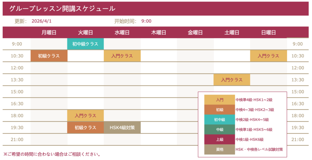 なお、現在の時間割にご希望の時間帯がない場合は、別途ご相談いただくことも可能です。お気軽にお問い合わせください。