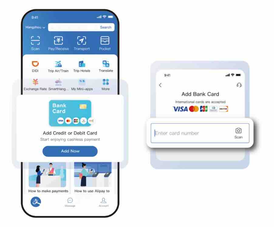 Alipayに登 録 できるカードの プランド は Visa、Mastercard、JCB、Diners Club、Discover です。